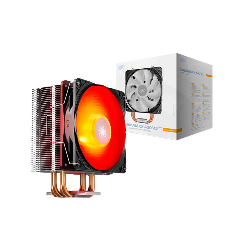 • The Deepcool GAMMAXX 400 V2 RED Air CPU Cooler is a high-performance cooling solution designed to effectively dissipate heat from your CPU while adding vibrant lighting to your system.